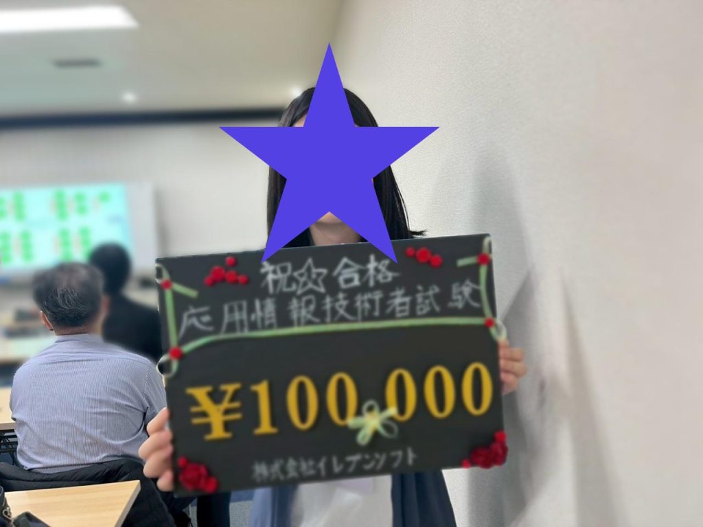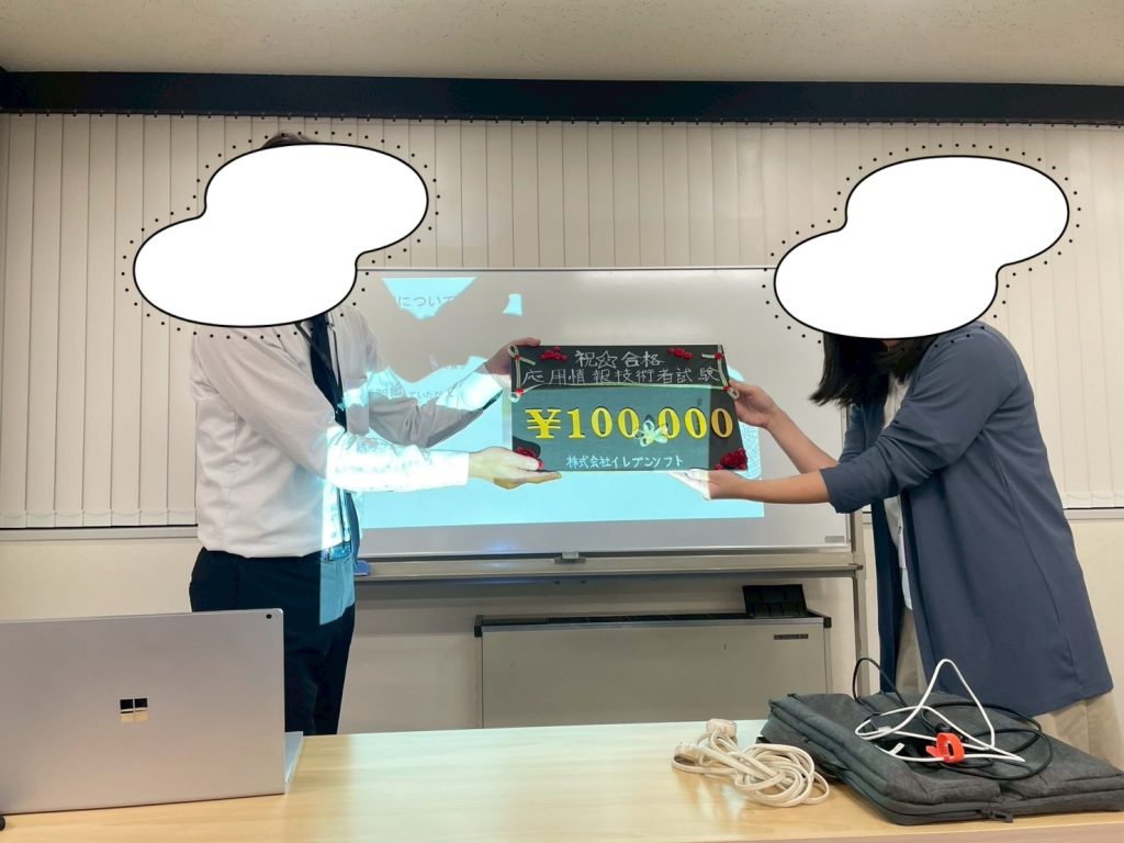応用情報技術者試験に受かった社員さんがおりまして、贈呈式を行いました!
