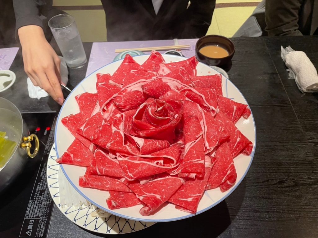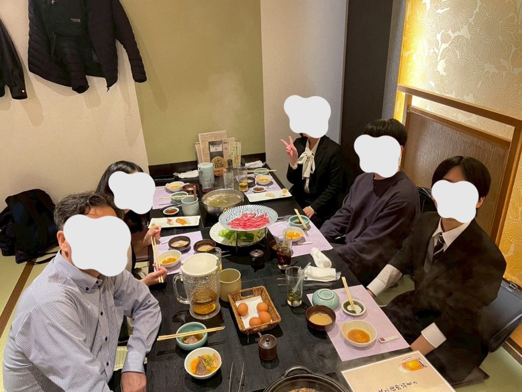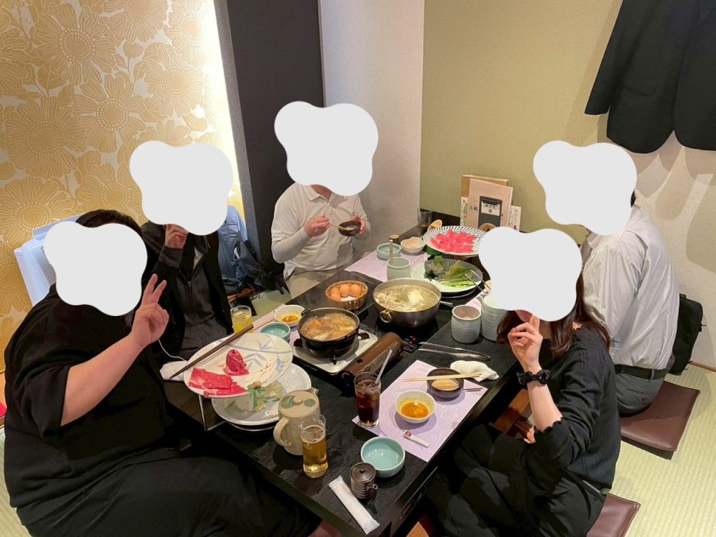 飲み会は寒くなってきたので、しゃぶしゃぶとすき焼き食べ放題のお店にしました!